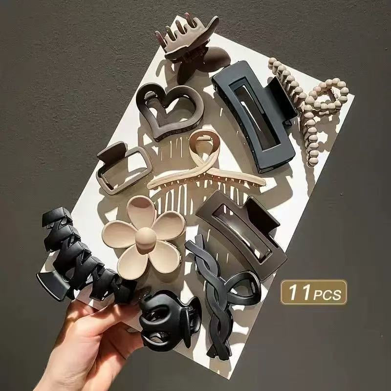 Black hair claw, flower claw clip, beige claw clip combo, Tushker Shop hair claw, gift for girls, girly accessories