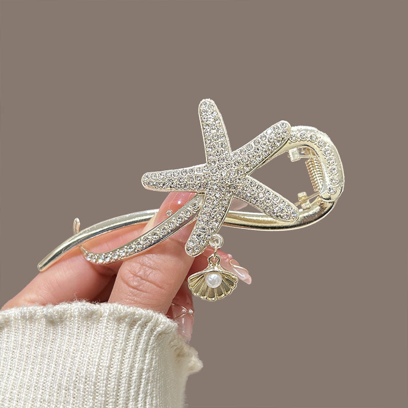 White hair clip, pearl hair clip, star fish hair clip, shell clip, gold hair clip, beach hair accessories, gifts for girls