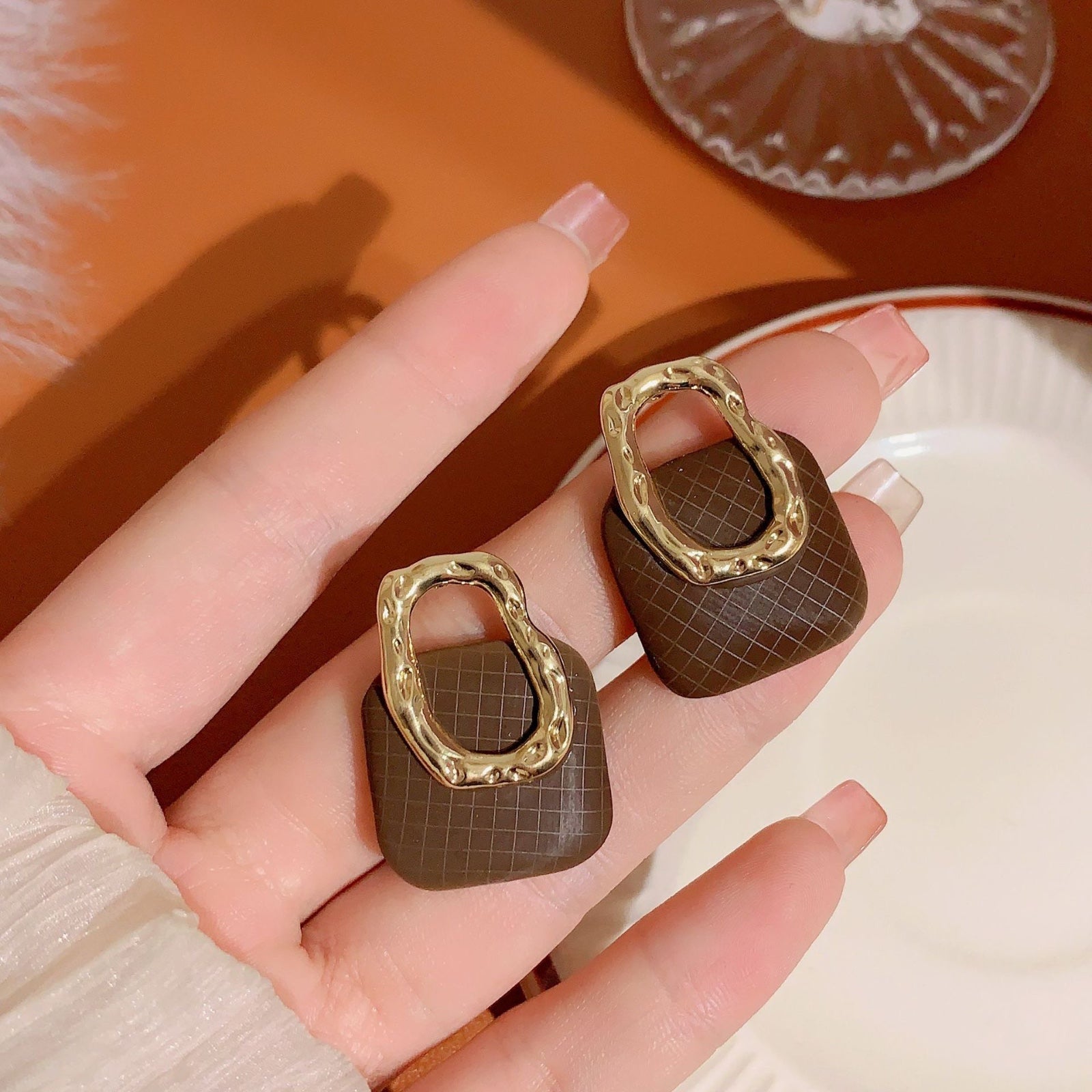 Gold earrings, brown earrings, party earrings, Tushker Shop accessories, gifts for girls