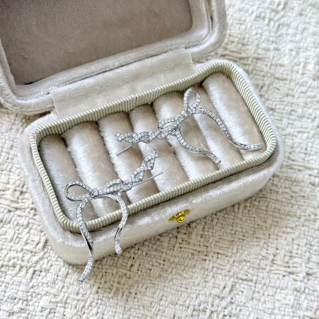 Silver earrings, bow earrings, rhinestone earrings, party earrings, Tushker Shop accessories, gifts for girls