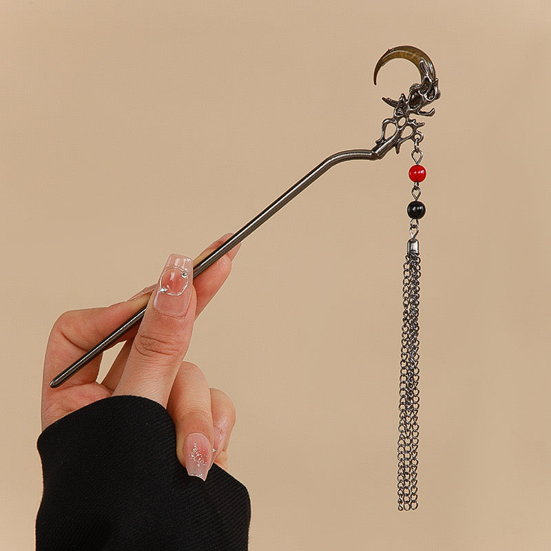 Grunge hair accessories, silver bun stick, moon bun stick, red bun stick, Tushker Shop bun stick, gifts for girls, baddie collection