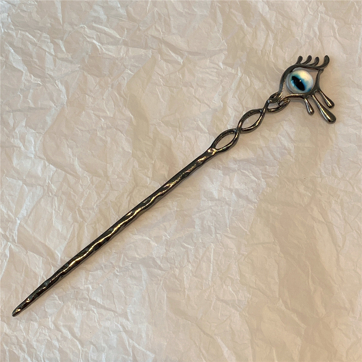 Grunge hair accessories, silver bun stick, eye bun stick, Tushker Shop bun stick, gifts for girls, baddie collection